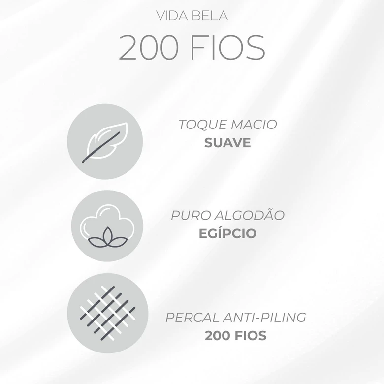 O algodão egípcio é reconhecido por sua durabilidade e maciez, fazendo com que os produtos da linha Vida Bela sejam resistentes e proporciona noites de sono relaxantes, além de manterem um visual elegante no quarto!
