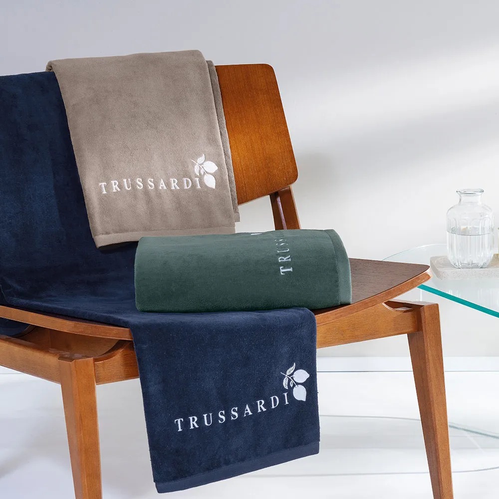 Na cor Boschi, a toalha de praia Limone traz a serenidade dos tons naturais da vegetação mediterrânea em uma peça elegante e funcional. Com 86 cm x 1,60 m e composta por 100% algodão, tem gramatura de 470 g/m² e acabamento em veludo que proporciona maciez extrema e absorção eficiente. O bordado exclusivo, com o icônico símbolo de limões e a assinatura da Trussardi, acrescenta um toque de arte e tradição italiana ao design.